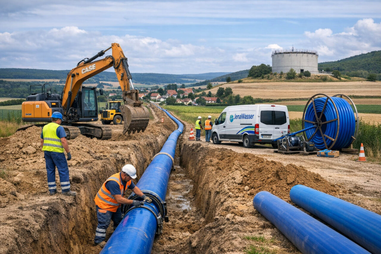 Wichtiger Trinkwasser-Ausbau: JenaWasser verlegt neue Trinkwasserleitung bei Jenalöbnitz